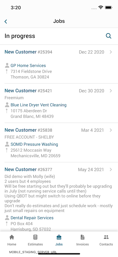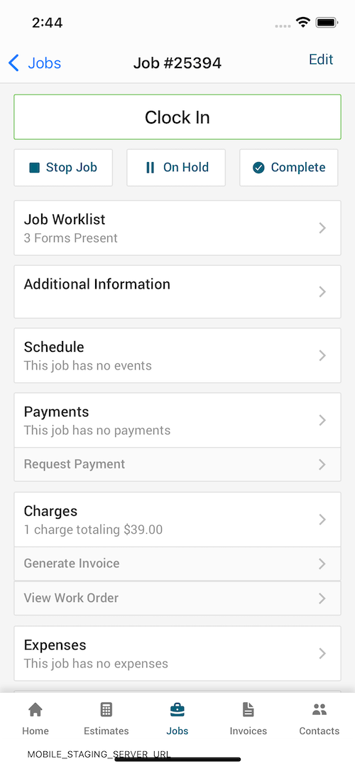 Open the Kickserv mobile app and navigate to the job details